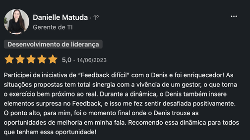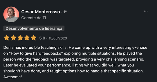 Abordaremos tudo sobre feedback e apresentaremos nossa metodologia exclusiva de como utilizá-lo, nada de técnica sanduíche. Colocaremos em prática suas habilidades com casos reais do mentorado.