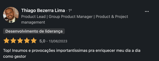 Sou fundador da empresa eCycle, no segmento de sustentabilidade. Já passei por startups do mundo digital, como a Webmotors, líder em seu segmento. Também trabalhei em empresas tradicionais, como bancos e financeiras, além de algumas consultorias, totalizando 23 anos de experiência no mercado. Ao longo desse período, ajudei muitos técnicos a se tornarem grandes líderes e auxiliei líderes a serem promovidos em suas áreas, além de capacitar técnicos para assumirem posições de liderança.
